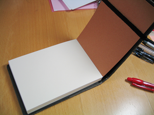 野外スケッチを行うには少々ハンドリングと安定性が悪い。そこで固めの厚紙をベースにカバーを作成したのだ。
