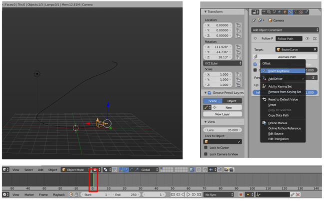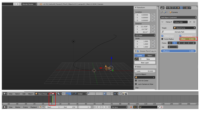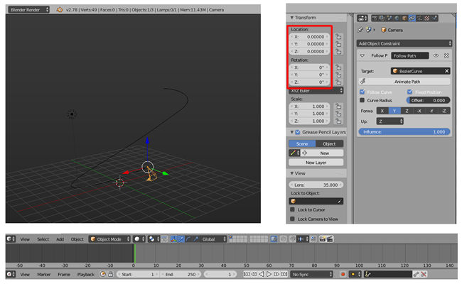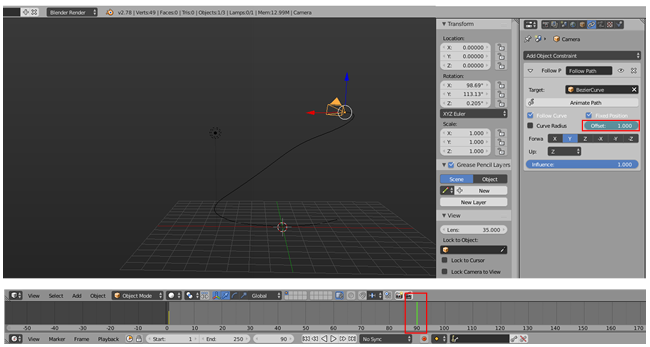 Blender パスに沿ってカメラを動かす(Follow Path Constraint使用)