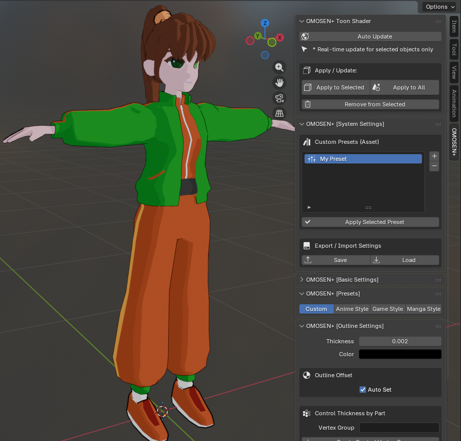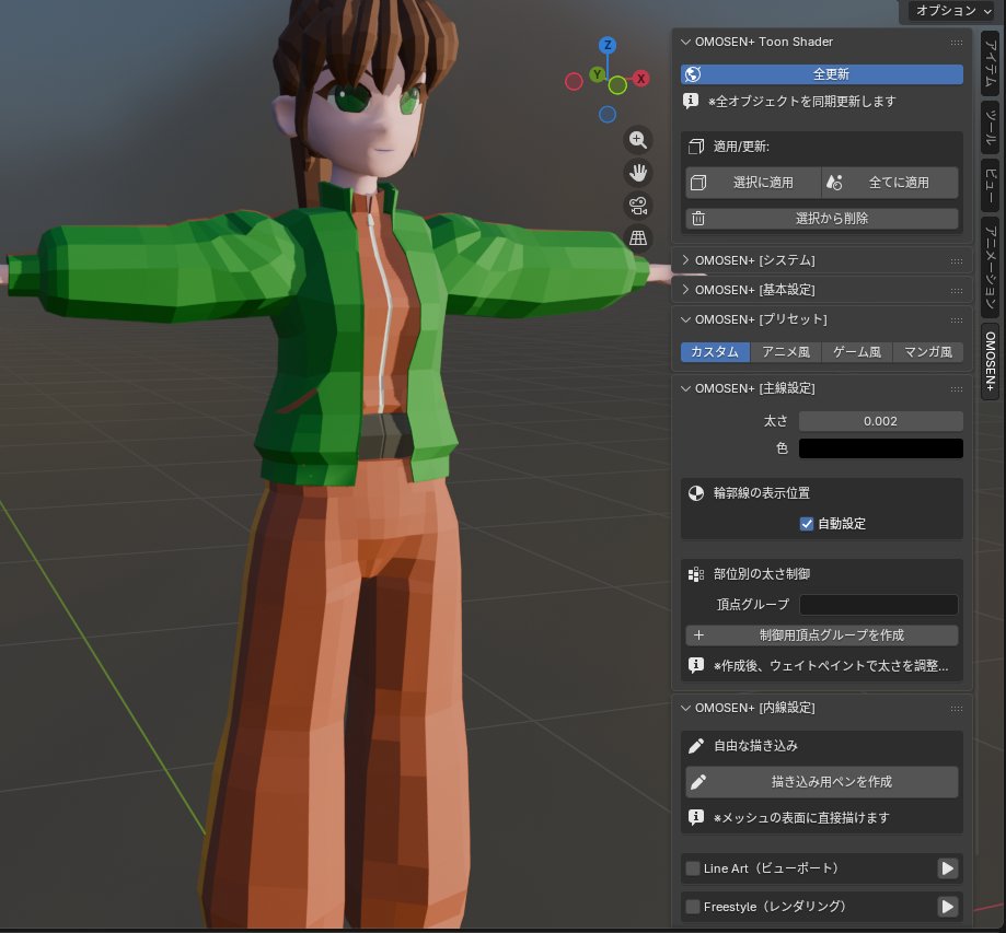 そこで、「OMOSEN+[主線プラス]トゥーンシェーダー」を作成しました。