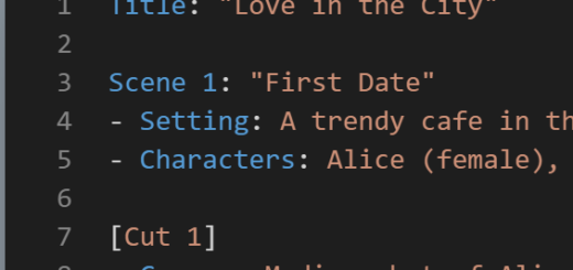 sequences > scenes > cuts > dialogueの階層構造 - YAML記述:人間が読めて、バージョン管理しやすい