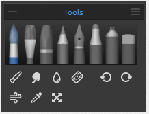 ツールは水彩ブラシ、アクリルブラシ、パステル、鉛筆、ペン、マーカー、エアーブラシ、消しゴムの8種類です。