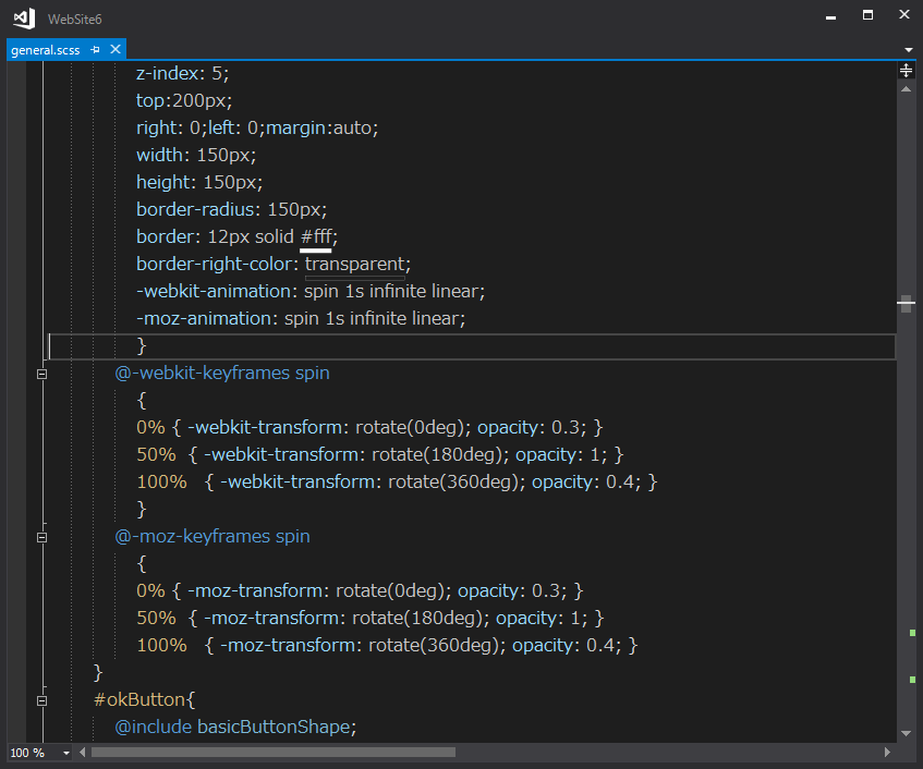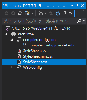 以下がソリューションエクスプローラーに作成されたSCSSファイルです。