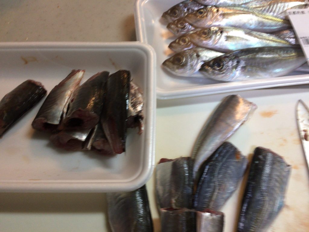 迷うところは 豆アジ なら腸を取り出すだけだが、 小アジ になると頭を落とすか、ぜいごを取るか否かですね。